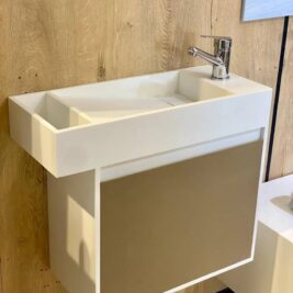 Lave-mains en Krion : un design moderne, élégant et facile à entretenir, idéal pour les petits espaces.