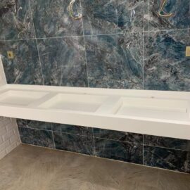 Lavabo trois bacs suspendu en krion blanc